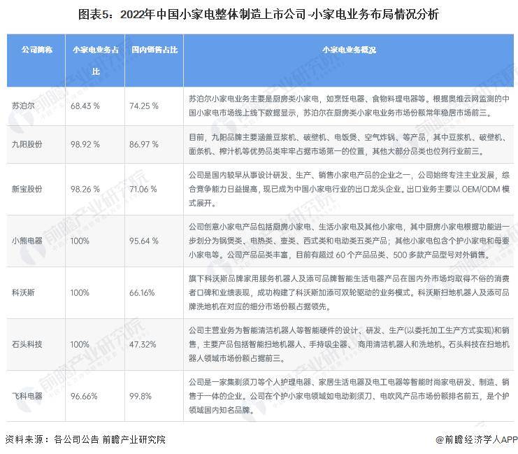 正在小家电工业-团体创设的上市公司中,除格力电器的小家电交易占比相对较低以外,其余上市公司小家电交易占比均较高,个中美的小家电归纳创设身手水准正在邦内处于行业绝对领先名望。分交易规模来看,正在厨房小家电规模,美的集团、苏泊尔及九阳股份商场份额位列前三;家居小家电规模,科沃斯、石头科技商场份额较高;个护小家电规模,外邦品牌戴森、松下、飞利浦气力强劲,中邦品牌飞科电器商场份额位列前五。正在区域结构方面,美的集团、苏泊尔、新宝股份、科沃斯、石头科技海外结构占比也较高,但团体看来,行业内企业均仍紧要以邦内为紧要结构区域。